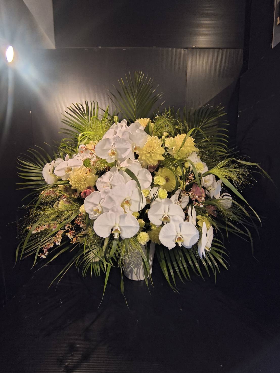 胡蝶蘭をふんだんに使用し、企業イメージカラーのグリーンを使用し、明るい黄色でさわやかな印象に仕上げました。